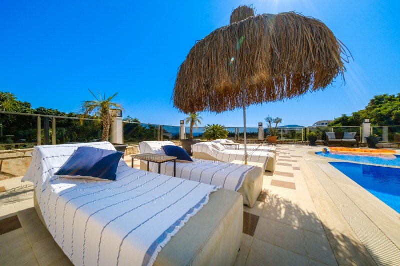 The house was built in 2007 and handed over in 2019. As a result, the villa was completely renovated and refurbished. The house is in excellent condition. The villa is adjacent to five other villas and is well maintained by a maintenance company. The villa is very well located within the villa complex and offers stunning views of the sea and the city.