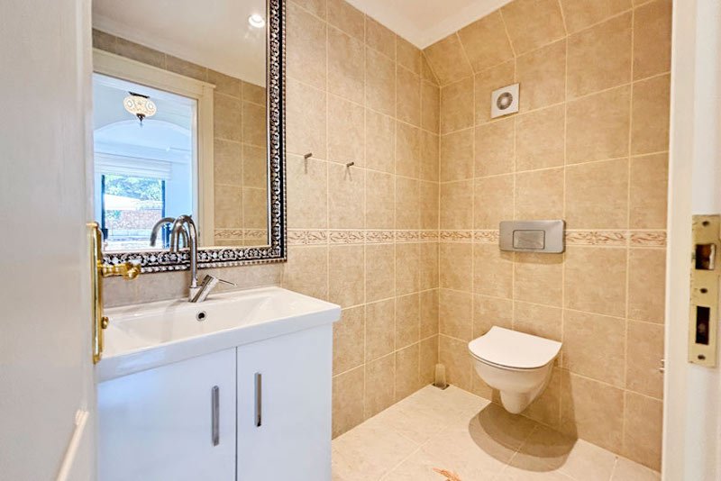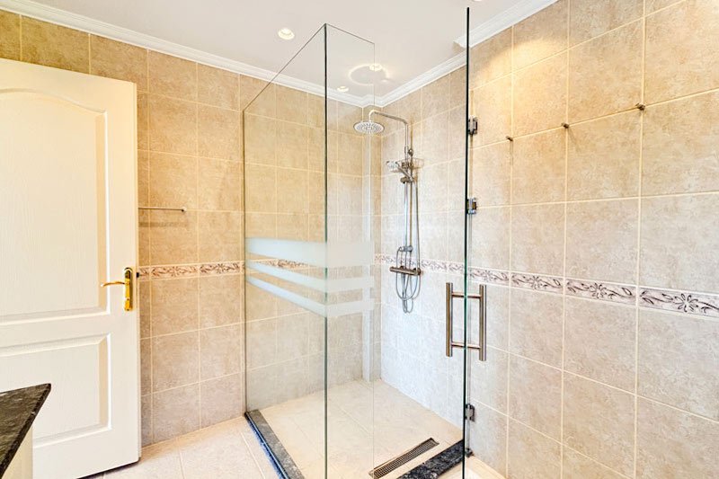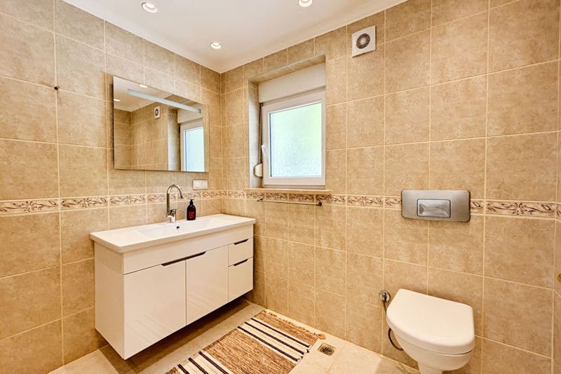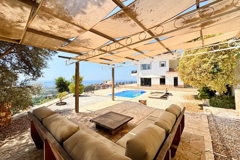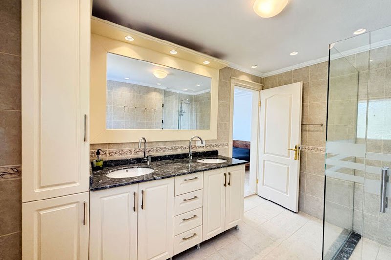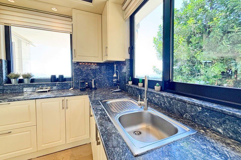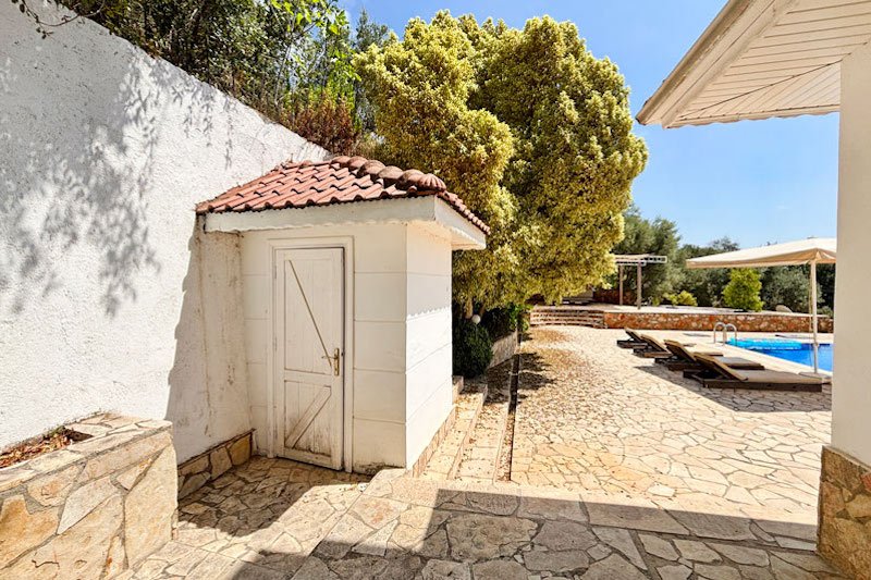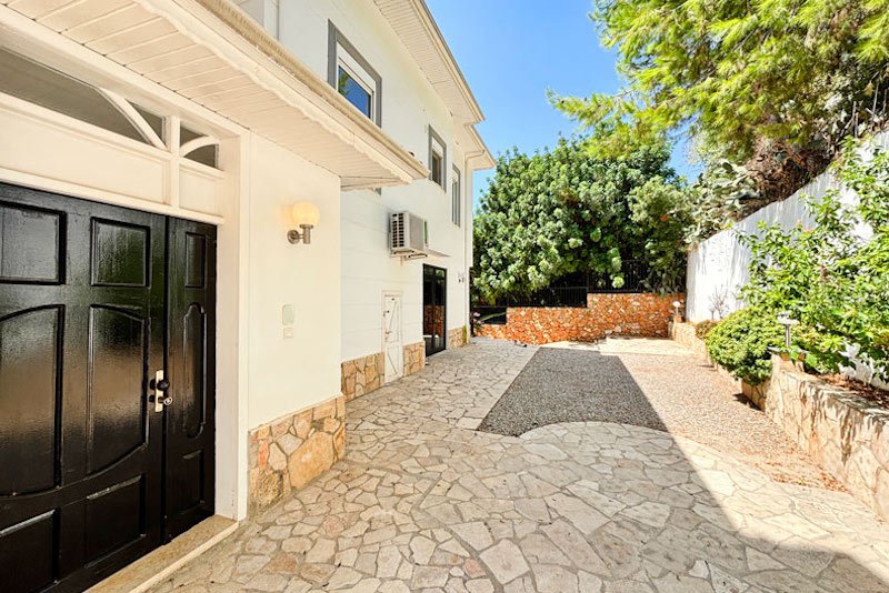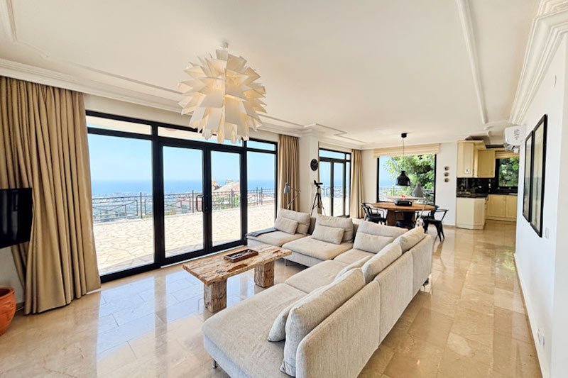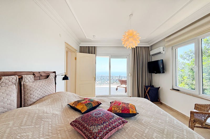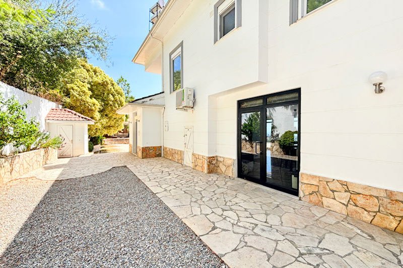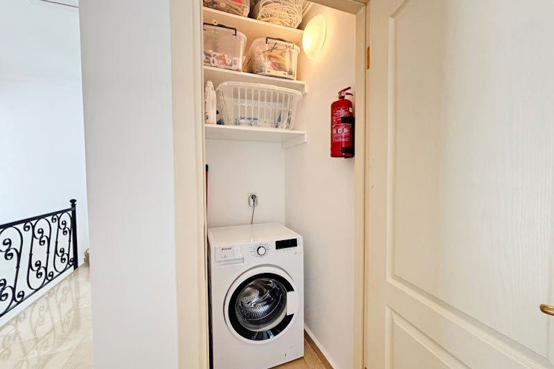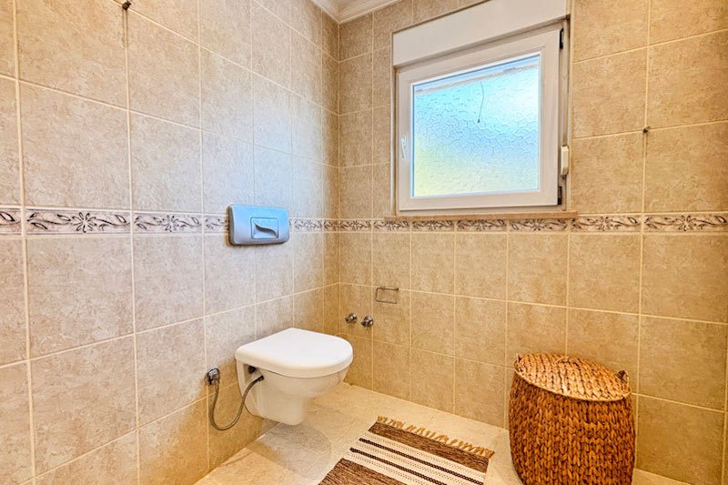 В просторном главном холле есть много места для хранения вещей, большой гостевой туалет и винтовая мраморная лестница, ведущая на верхний этаж виллы. Здесь расположены три просторные спальни с двуспальными кроватями, семейная ванная комната с душем и небольшая удобная кладовая. Во всех спальнях есть раздвижные двери, ведущие на балконы, где можно загорать и любоваться фантастическим видом на синее море и местное побережье. В роскошной главной спальне также есть современная ванная комната и собственный балкон.
