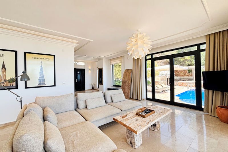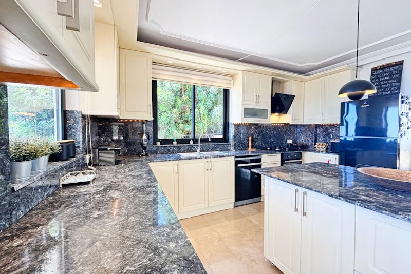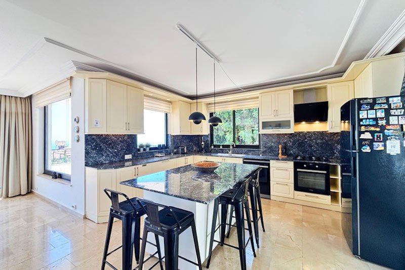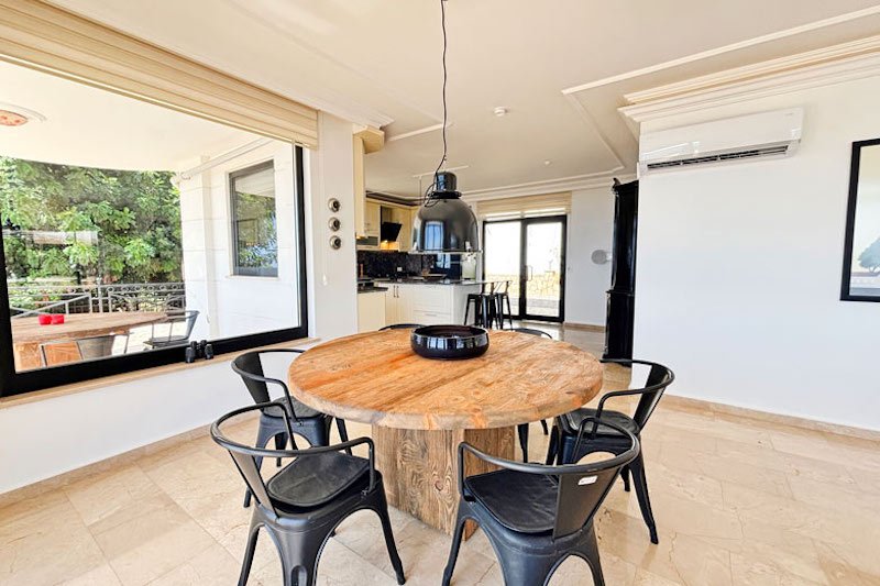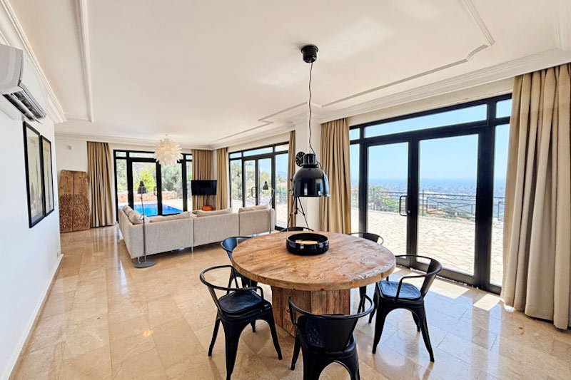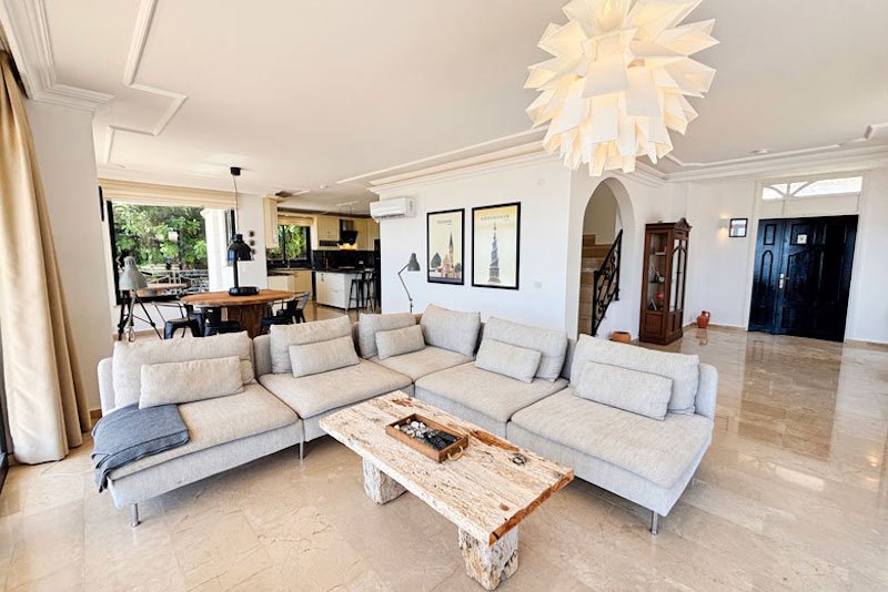 Эта потрясающая вилла, прекрасно спланированная, стильно оформленная и обставленная, отличается теплой и гостеприимной атмосферой. Роскошный интерьер площадью 195 м² занимает два уровня, создавая идеальное сочетание внутреннего пространства и пространства на открытом воздухе. На нижнем уровне расположена просторная гостиная открытой планировки, излучающая элегантность и комфорт. Панорамные окна наполняют комнату светом, открывая панорамные виды и открывая потрясающие виды. Из них также открывается вид на великолепные террасы и частный бассейн. Уютная гостиная дополняется уютной обеденной зоной и частично отдельной шикарной кухней с большим островом для завтраков. Это идеальное место для отдыха с друзьями или для ленивых дней, загорая на солнце, и вечеров на свежем воздухе, любуясь закатом.